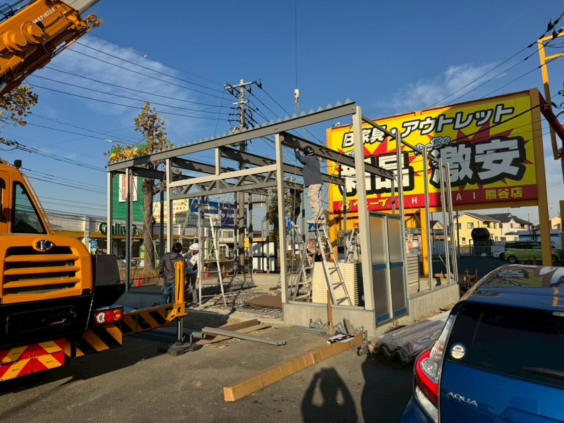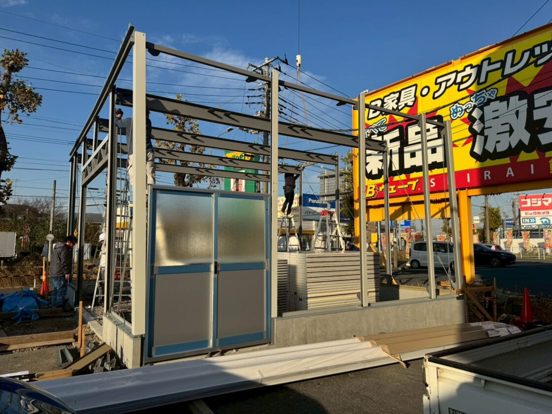 2025年12月8日 埼玉県某所 テナント敷地内にて新築プレハブ倉庫棟の建方